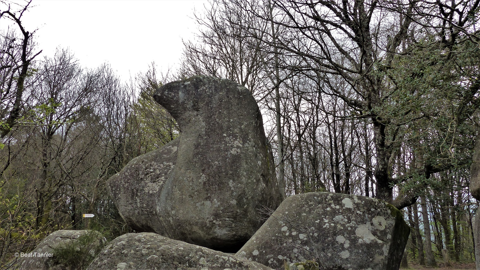 Unterwegs entdeckt Beat eine Hinweistafel auf die Rochers de Sidobre.