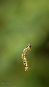 Ob sich die Steinforelle von Raupen ernährt, wissen wir nicht. Doch hängen viele dieser Larven an dünnen Fäden von den umliegenden Bäumen und Sträuchern.