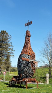Und hier in Frankreich, in Lacaune bewundern wir eine andere Art Schinken, die an einer Strassenverzweigung steht.