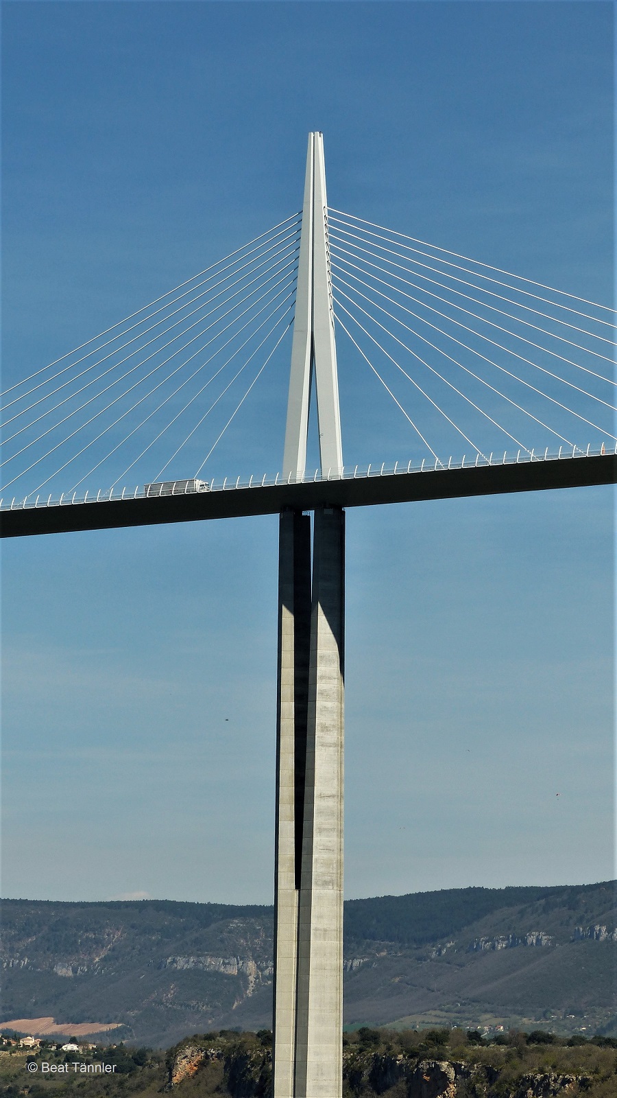 „Das Viadukt ist mit 2460 m die längste Schrägseilbrücke der Welt und bei einer maximalen Pfeilerhöhe von 343 m das höchste Bauwerk Frankreichs.“ (Wikipedia)
