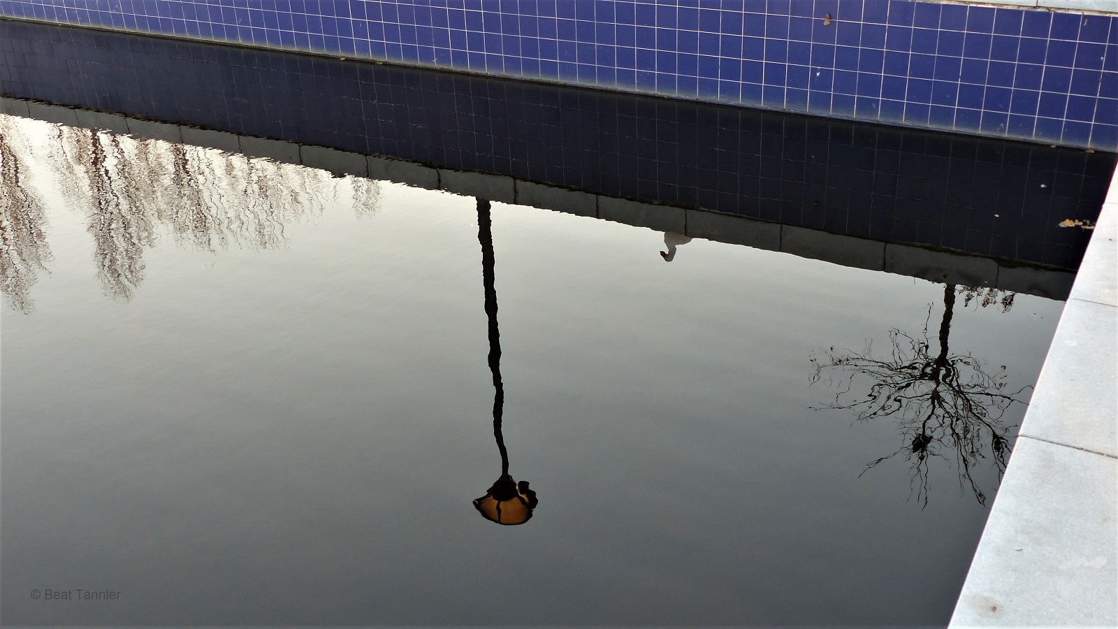 Am Rande des Parks wurde ein Wasserlauf angelegt. Darin spiegelt sich die Umgebung. Das ist zwar nicht Kunst, aber trotzdem schön. 😉