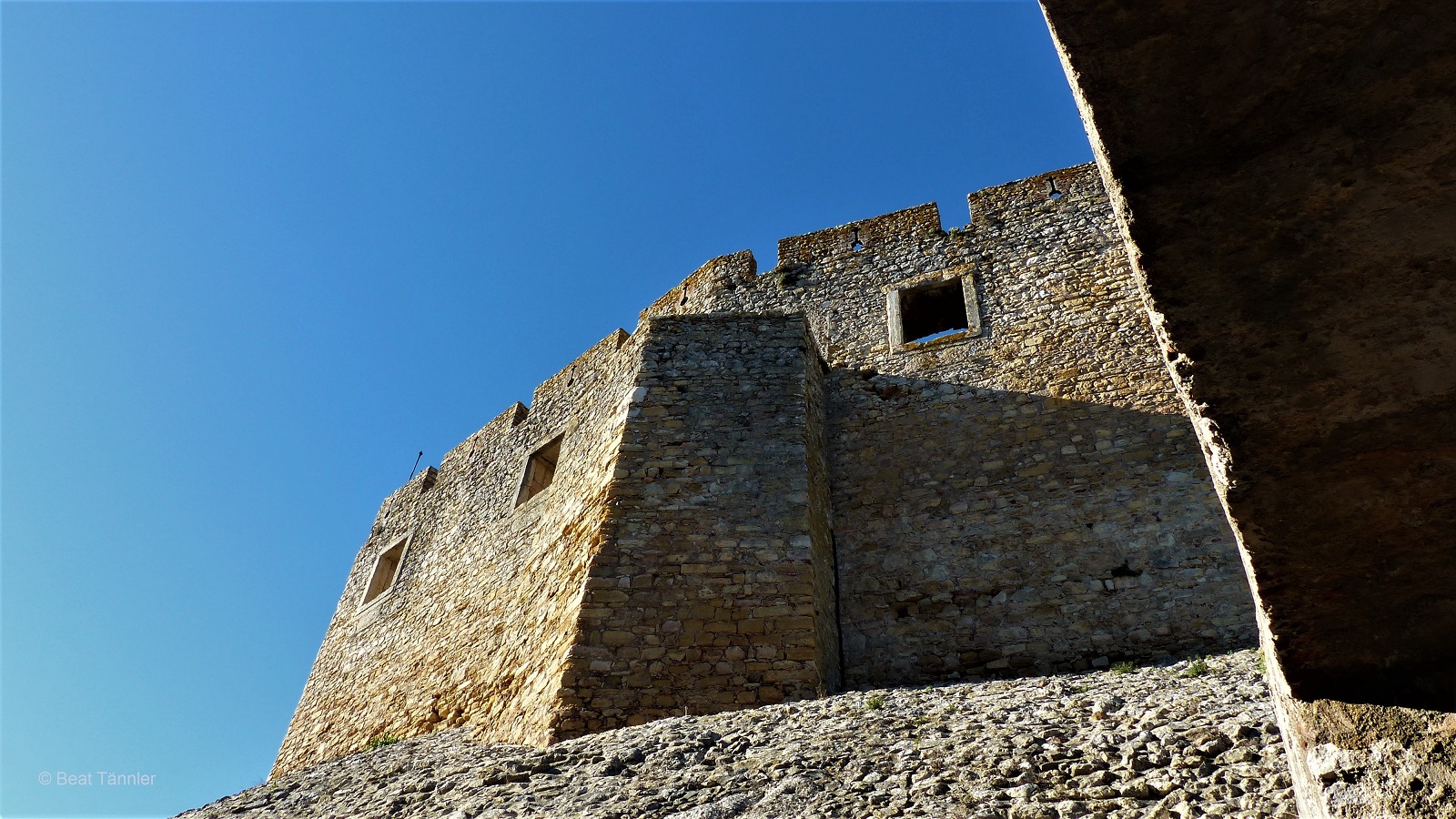 Der Dunst lichtet sich langsam und entlässt die Burg, das Wahrzeichen von Mértola, in den neuen Tag.