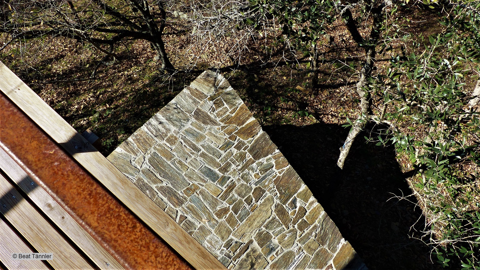 Wir gondeln weiter durch die Gegend. Am Miradouro do Castro sehen wir wieder behauene Steine, aber anders als gestern im Convento Santo Cristo.