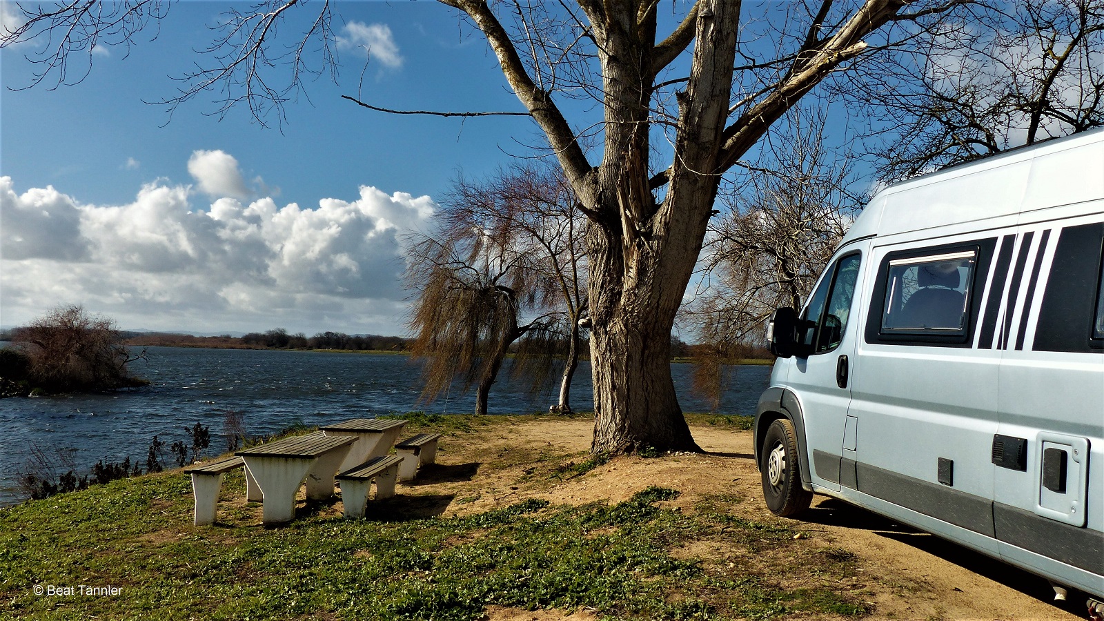 Doch zuerst zieht es uns an den Fluss Tejo. Dass kurz vor unserem Ziel aus den Lüftungsschlitzen nur noch kalte Luft strömt, beunruhigt uns noch nicht sehr.