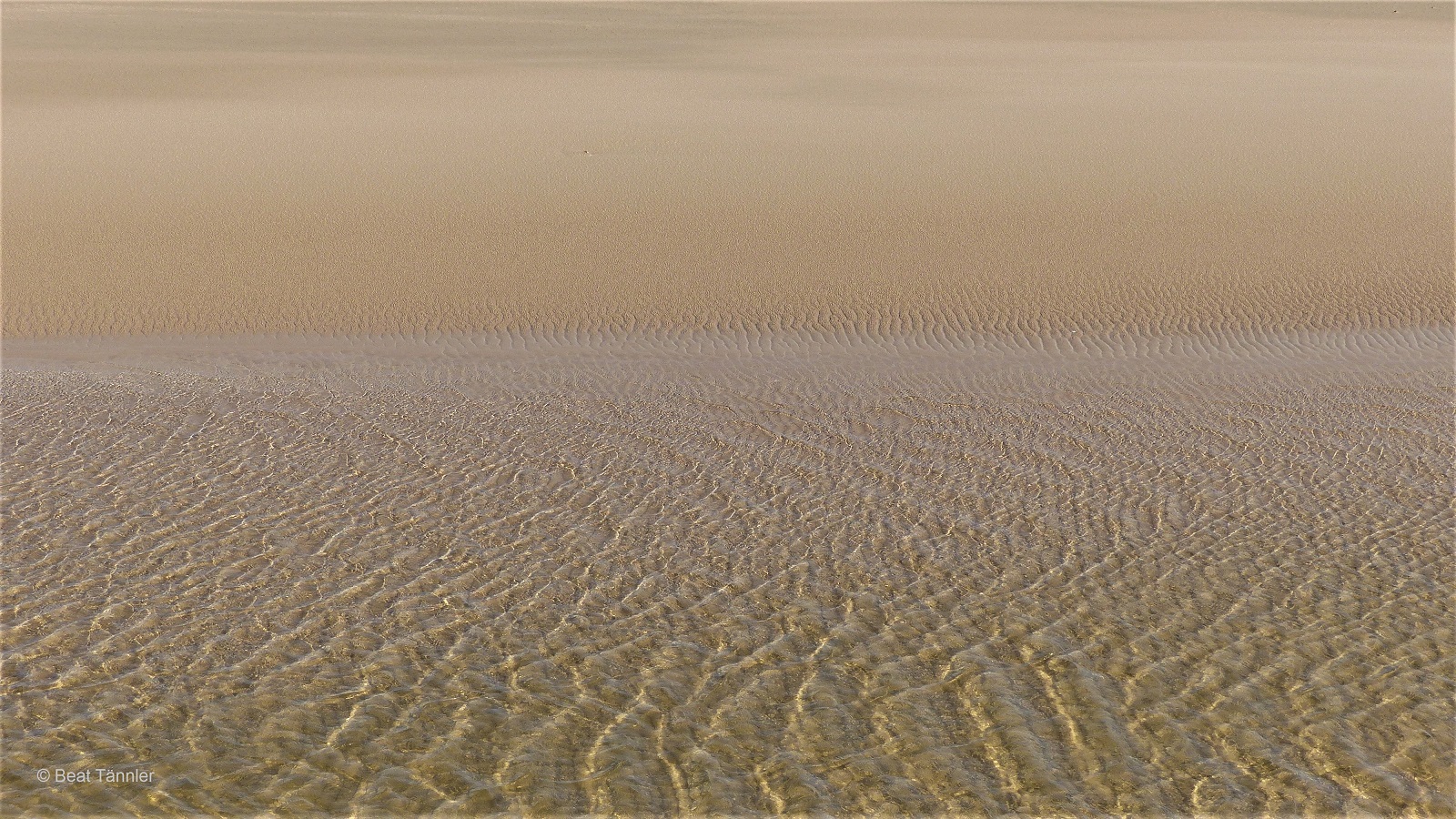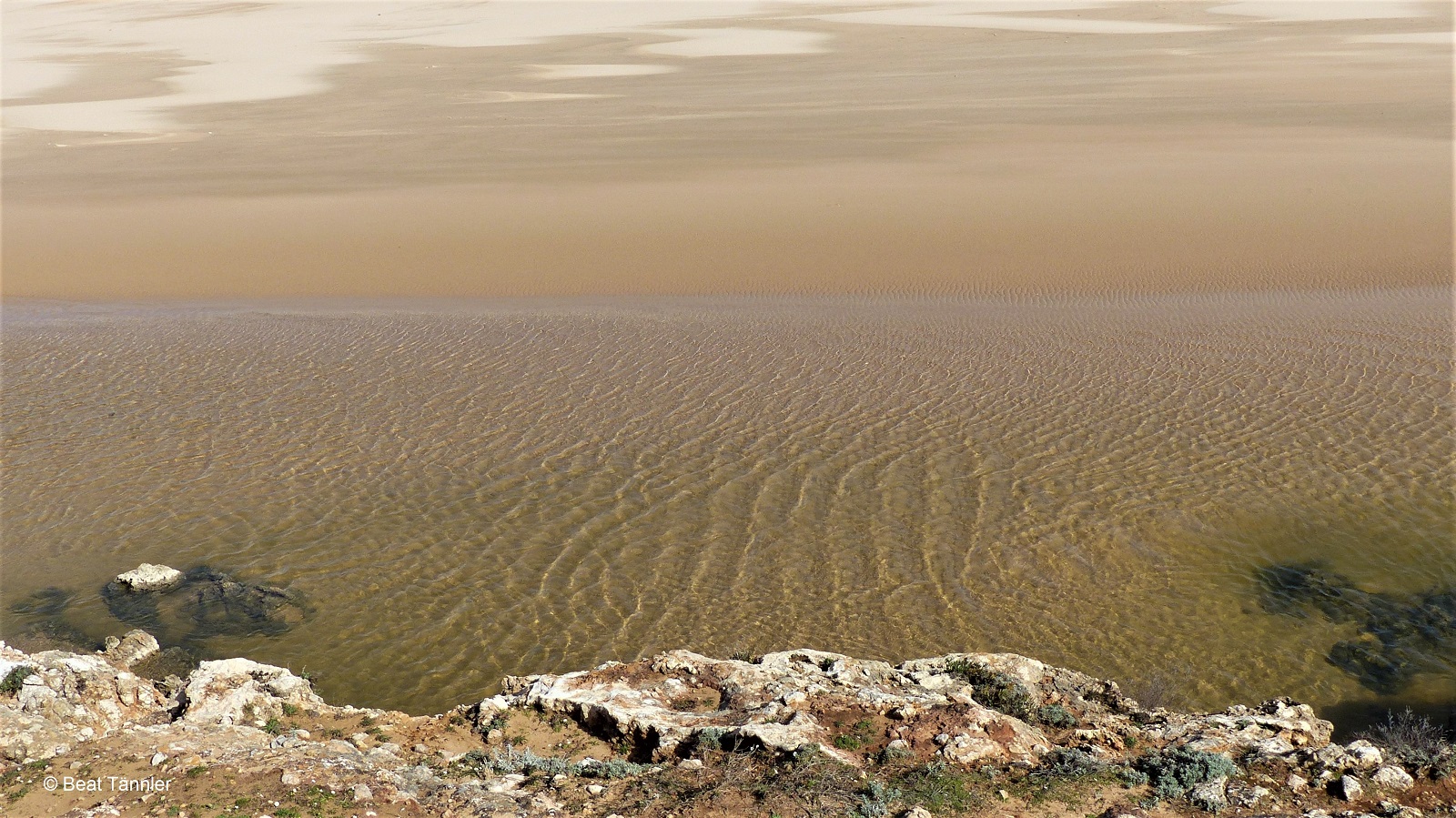 Doch am Rande des Gewässers geht es ruhiger, fast schon poetisch zu. In einer kleinen Pfütze spiegeln sich das umliegende Gestein als wären es hohe Berge.