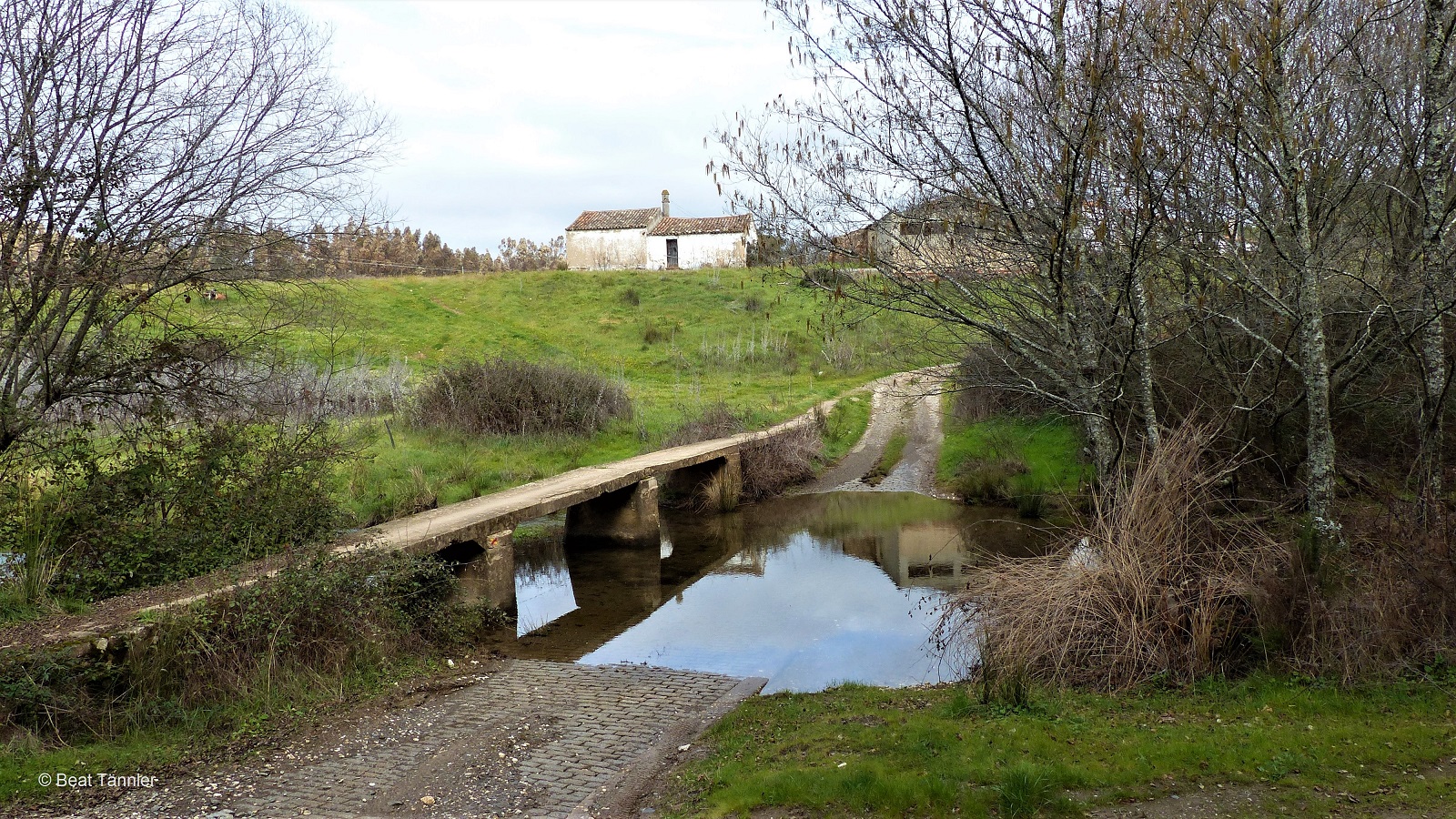 Annette kommt dabei mit Dona Maria ins Gespräch. Sie ist gewiss über 70 Jahre alt und verbrachte ihr ganzes Leben in diesem Dorf. Im Sommer steige das Thermometer jeweils über 40°C und die Wiesen seien alle braun, weiss sie zu berichten. Ihr Mann schwärmt vom Barragem do Alqueva. Das sei der grösste Stausee Europas. Den müssten wir uns unbedingt ansehen.